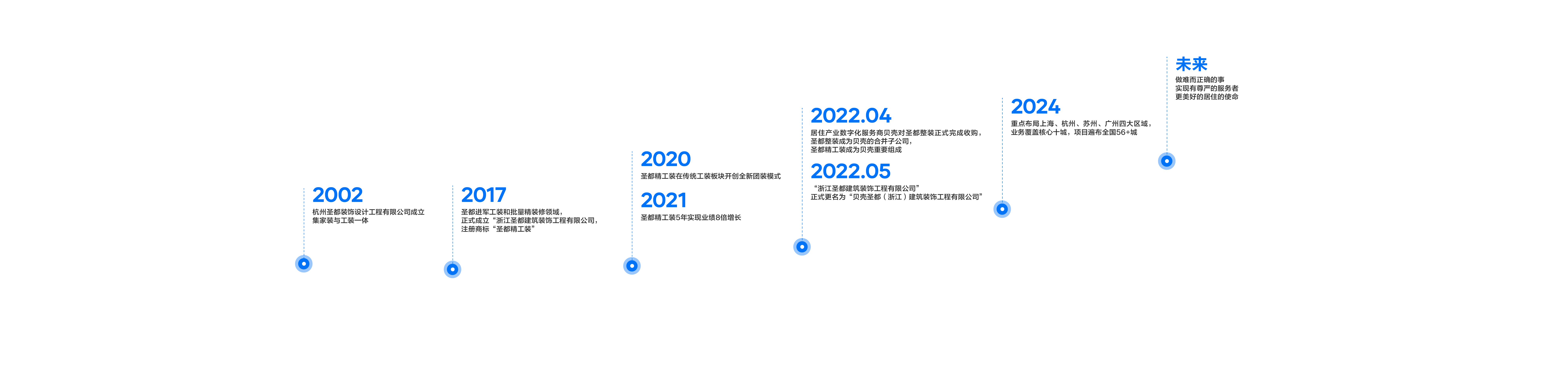 贝壳精工装全称: 贝壳圣都(浙江)建筑装饰工程有限公司,是美股&港股上市公司贝壳旗下工装品牌。依托贝壳数字化居住平台势能与圣都标准品质及工程管理机制的多重经验,贝壳精工装为客户提供高效、专业的工装服务。贝壳精工装重点布局浙江、上海、江苏、广东四大区域,业务覆盖核心十城,项目遍布全国56+城。累计合作项目超1400项,装修面积超200万㎡;服务精装业主超30000家,具备年交付10000套以上精装房的施工能力。先后与保利、中铁、绿城、蓝城、金茂等知名地产公司合作并收获高度认可。公司秉承客户至上理念,致力打造高质量、可信赖的品质精装。贝壳精工装拥有强大的集采供应链及产业化工班,专注大型房产精装,具有七大类资质证书,涉及建筑装饰、设计、消防、市政、环保等方面。工艺高标准、管理高能效、服务高保障,全周期装修服务让交付工程“诚信、透明、精致”。